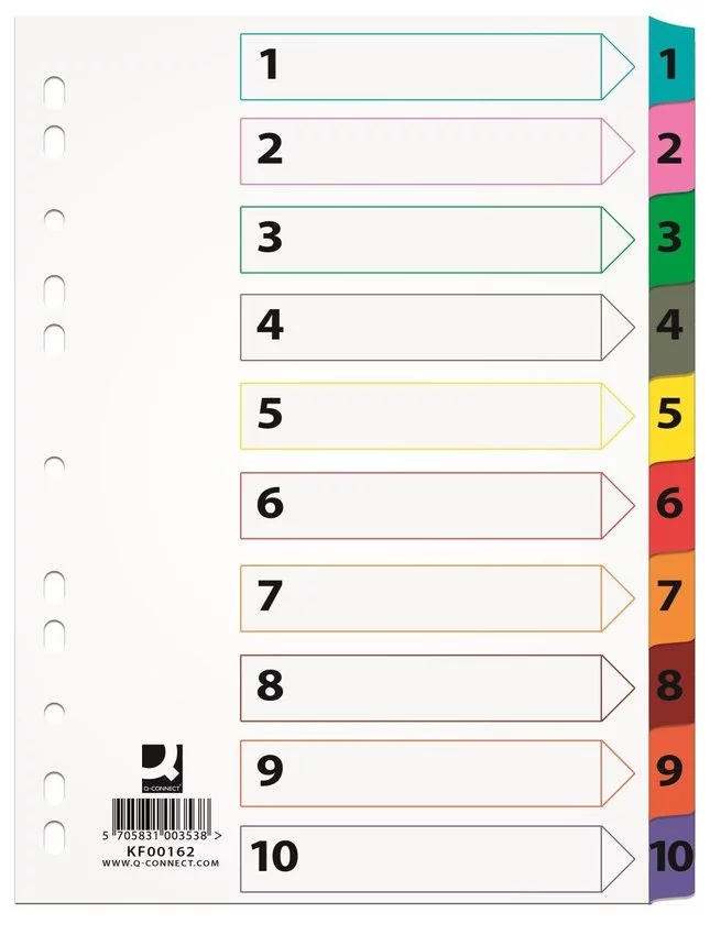 Przekładki Pap. A4 Numeryczne 1-10 Białe /Q-Connect