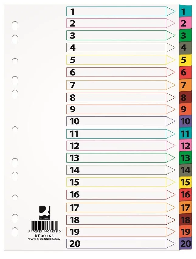 Przekładki Pap. A4 Numeryczne 1-20 Białe /Q-Connect