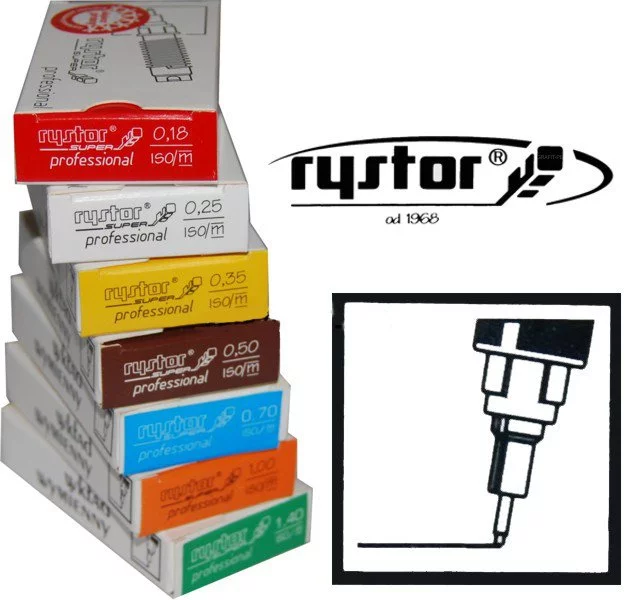 Rapidograf pisak kreślarski firmy Rystor to w pełni profesjonalny sprzęt kreślarski znany na całym świecie. Do wielokrotnego napełniania tuszem kreślarskim. Łatwe w czyszczeniu. Jeżeli kreślicie Państwo projekty to ta końcówka jest dla was. Unikniecie dzięki temu przestoju w pracy.