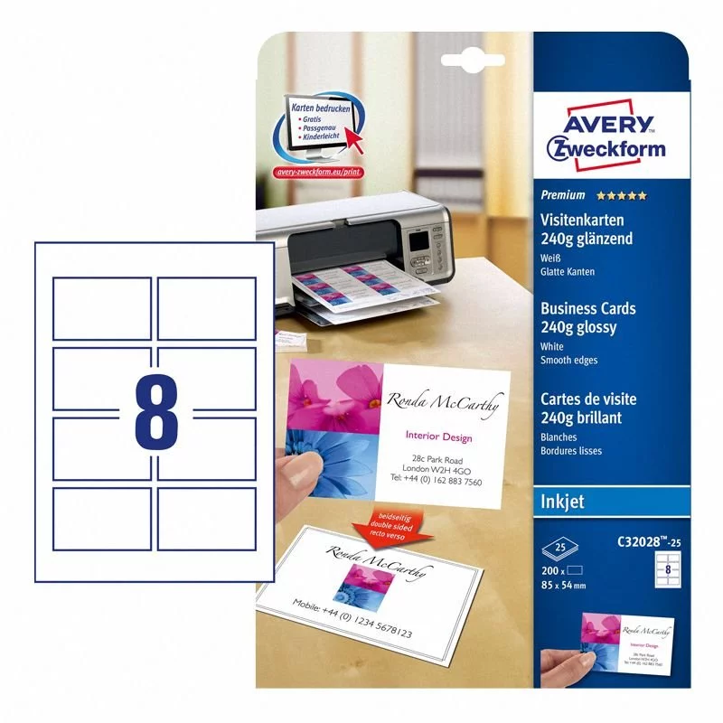- Papier wizytówkowy Avery Zweckform C32028-25, kolor biały, połysk.