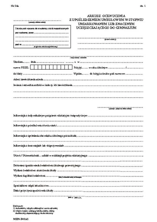 Arkusz Ocen MEN-I/40a/2 dla Uczniów z Upośl. Gimnazjum /W-X