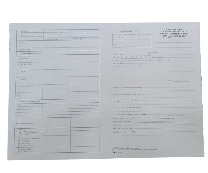 Arkusz Ocen MEN-I/38/2 dla Uczniów z Upośl. Szk. Podst. /W-X