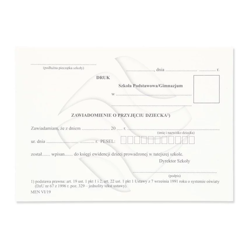Zawiadomienie o Przyjęciu Dziecka VI/19