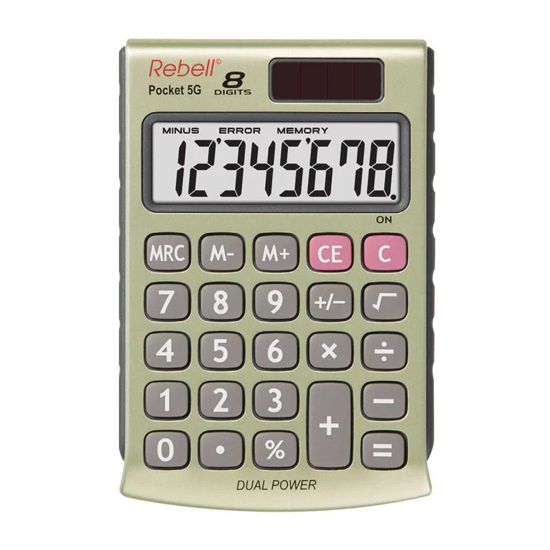 Pocket 5G posiada wytrzymałą, metalową obudowę oraz wygodne gumowe przyciski. Ośmiocyfrowy wyświetlacz pozwoli Ci na wykonywanie na nim obszernych obliczeń a panel słoneczny wspomagany małą bateryjką sprawiają, że możesz używać go w każdym miejscu i każdej porze dnia i nocy :) Dodatkowym atutem kalkulatora są funkcyjne klawisze %, +/-, ? a także 3 klawisze pamięci.