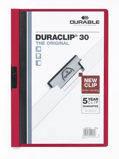 Skoroszyt z Klipem A4 PVC Duraclip 30 Kartek Czerwony /Durable 220003