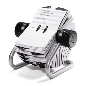 - Kartoteka obrotowa na a wpisy numerów telefonów i adresów. 500 kart do obustronnego opisania o formacie 72 x 104 mm