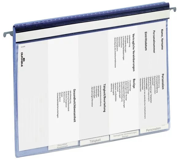 Teczka Osobowa Zawieszana A4 PP 5 Przegródek Listwa Indeksy Niebieska /Durable 255506
