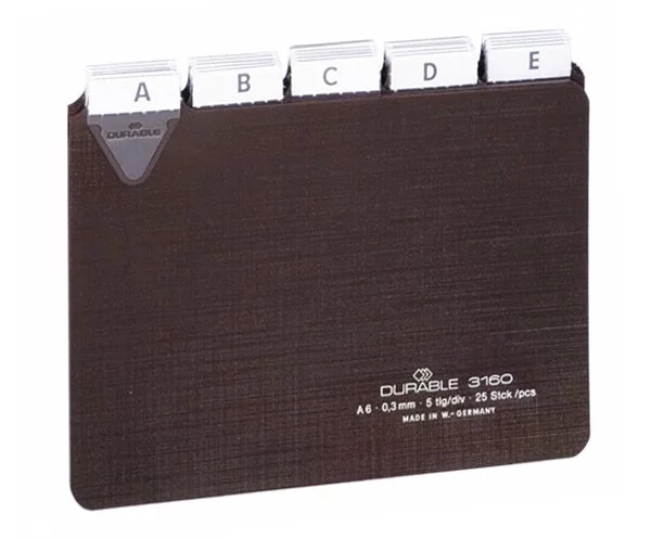 Przekładki do Kartotek 5/5 PCW 0,3mm Indeksy 25mm Zgrzane Poziome A6 25cz. Brązowe /Durable 316011