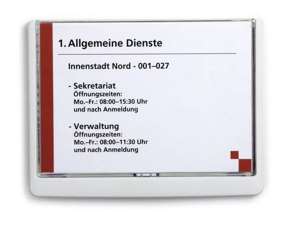 - Profesjonalna tabliczka informacyjna na drzwi lub obok drzwi o estetycznym i przejrzystym wzornictwie