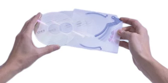 - Ruchem jednego palca wypychasz płytę z pudełka
