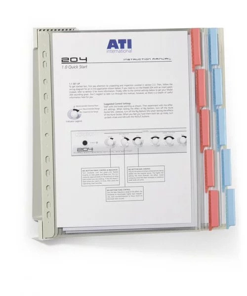- Panele informacyjne z kolorową krawędzią do łatwiejszego optycznie odszukiwania poszczególnych paneli i indeksmi w tym samym kolorze w podziale 5/5