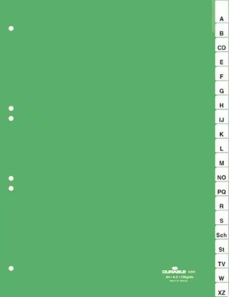 Przekładki do Segregatorów A-Z (20) Strona Tytułowa Zgrzane PP A4 Zielone /Durable 620005