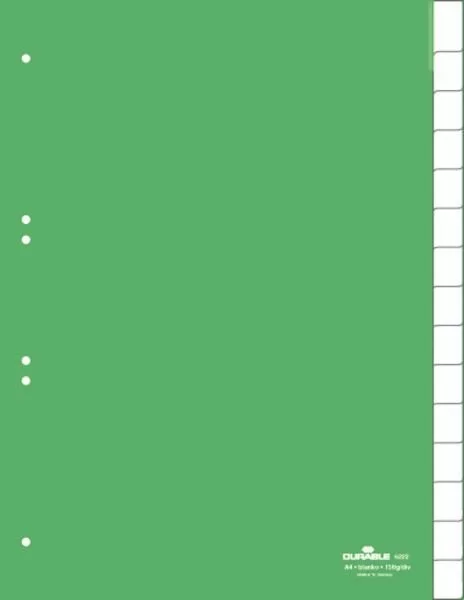 Przekładki do Segregatorów 1-15, A-Z (15) Indeksy Strona Tytułowa Zgrzane PP A4 Zielone /Durable 622205