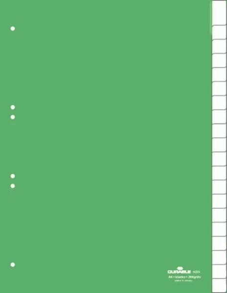 Przekładki do Segregatorów 1-20, A-Z (20) Indeksy Strona Tytułowa Zgrzane PP A4 Zielone /Durable 622305