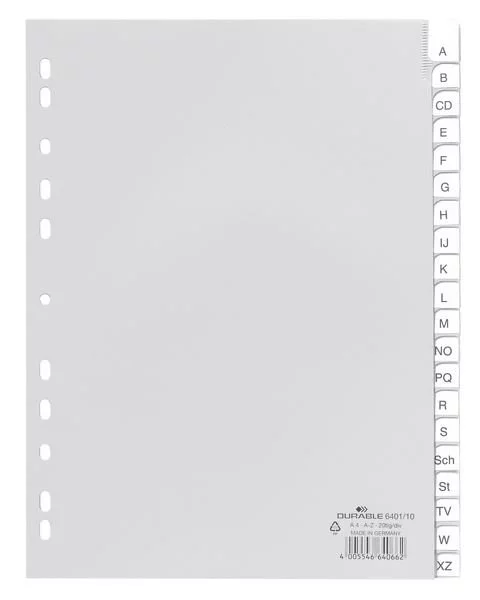Przekładki do Segregatorów A-Z (20) Strona Tytułowa Zgrzane PP A4 Szare /Durable 640110