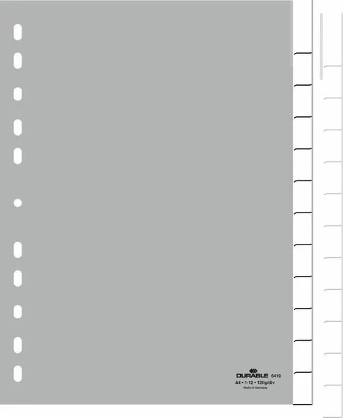 Przekładki do Segregatorów 1-12, Jan.-Dez. (12) Indeksy Zgrzane PP A4 Szare /Durable 641010