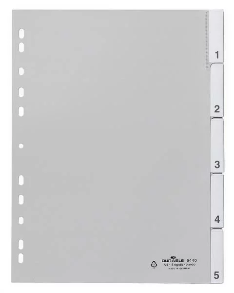 Przekładki do Segregatorów 1-5 Indeksy Zgrzane PP A4 Szary /Durable 644010
