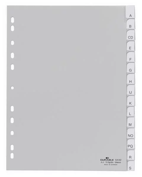 Przekładki do Segregatorów 1-15, A-Z (15) Indeksy Zgrzane PP A4 Szare /Durable 644210
