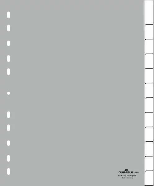 Przekładki do Segregatorów 1-12, Jan.-Dez. (12) Indeksy Zgrzane PP A4 Poszerzane Szare /Durable 644610