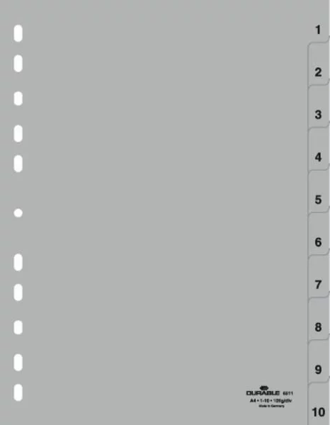 Przekładki A4 PP 1-10 Szare /Durable 651110