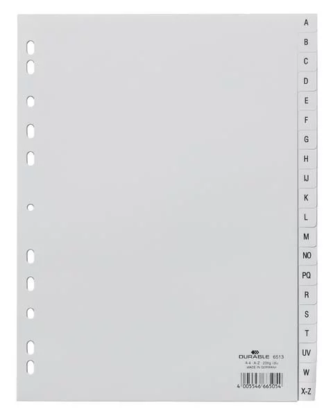 Przekładki do Segregatorów A-Z (20) Alfabet Międzynarodowy PP A4 Szare /Durable 651310