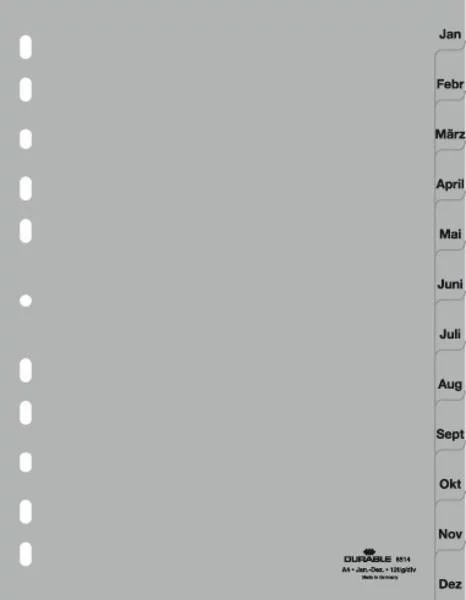 Przekładki do Segregatorów Jan.-Dez. (12) PP A4 Szare /Durable 651410