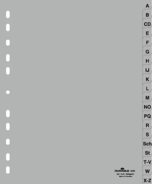 Przekładki do Segregatorów A-Z (20) PP A4 Poszerzone Szare /Durable 652010
