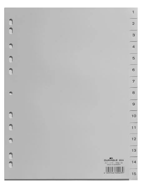 Przekładki do Segregatorów 1-15 PP A4 Szare /Durable 652410