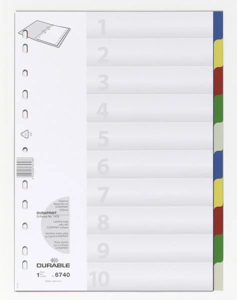 Przekładki do Segregatorów Czyste (10) Strona Tytułowa PP A4 Mix Kolorów /Durable 674027