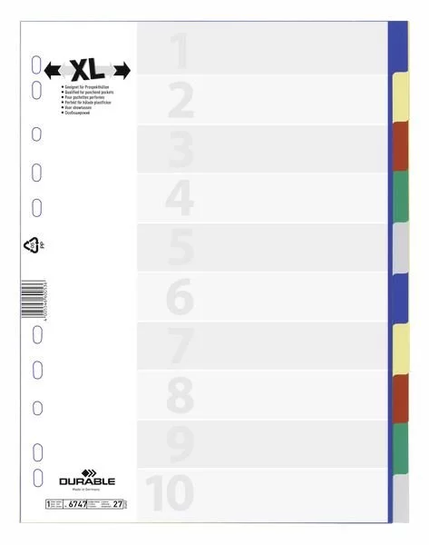 Przekładki do Segregatorów Czyste (10) Strona Tytułowa PP A4 Poszerzane Mix Kolorów /Durable 674727