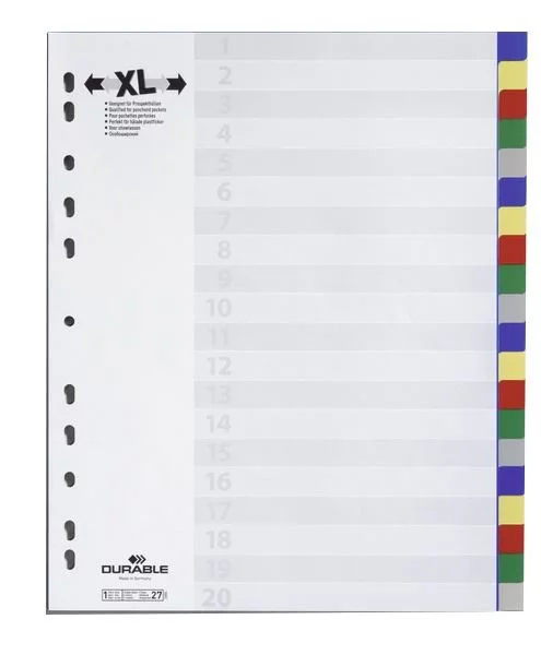 Przekładki do Segregatorów Czyste (20) Strona Tytułowa PP A4 Poszerzane Mix Kolorów /Durable 675927