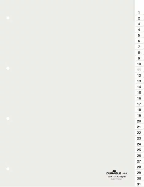 Przekładki do Segregatorów 1-31 Strona Tytułowa Zgrzane PP A4 Przezroczyste /Durable 681919