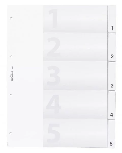 Przekładki do Segregatorów 1-5 Indeksy Strona Tytułowa Zgrzane PP A4 Przezroczysty /Durable 682019