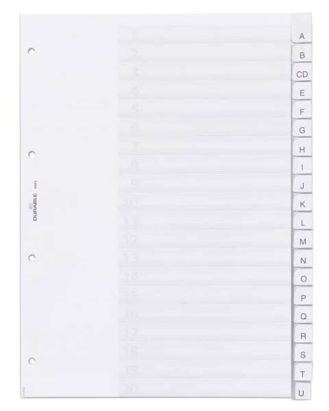 Przekładki do Segregatorów 1-20, A-Z Strona Tytułowa Indeksy Zgrzewane A4 Przezroczyste /Durable 682319