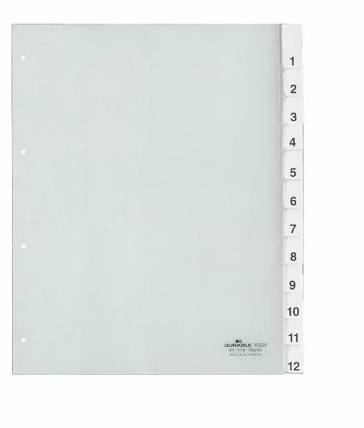 Przekładki A4 PP 1-12 Poszerzone Przezroczyste /Durable 683519