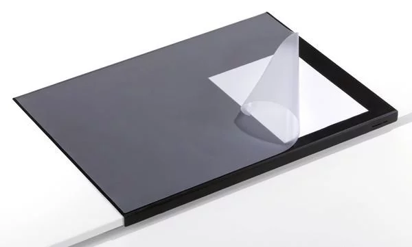 - Podkład na biurko z zabezpieczeniem krawędzi i transparentną nakładką, idealną do włożenia pod nią notatek i spisów (np. nr telefonów)