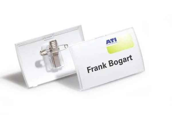 - Elastyczny zawias łączy przednią i tylną część identyfikatora - umożliwia prostą i szybką wymianę etykiety