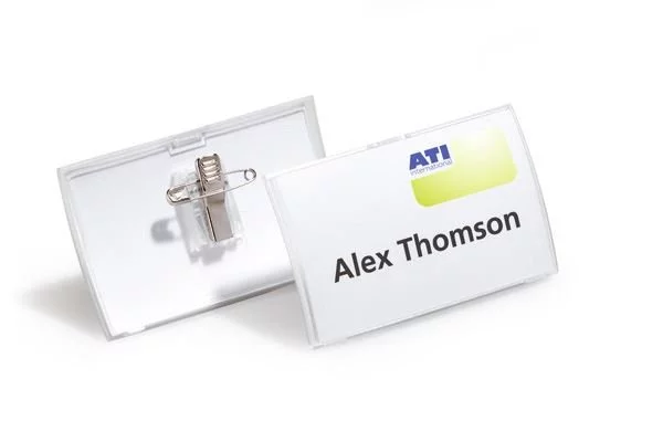 - Elastyczny zawias łączy przednią i tylną część identyfikatora - umożliwia prostą i szybką wymianę etykiety