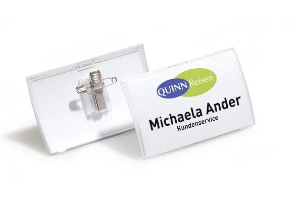 - Elastyczny zawias łączy przednią i tylną część identyfikatora - umożliwia prostą i szybką wymianę etykiety
