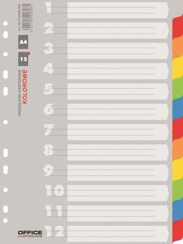 Przekładki Pap. A4 Kolorowe 12k /Office Product