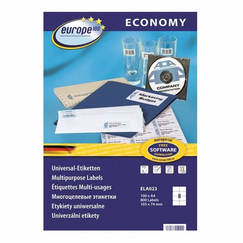 Etykiety, samoprzylepne Europe100 by Avery Zweckform ELA023 z linii Economy, kolor biały