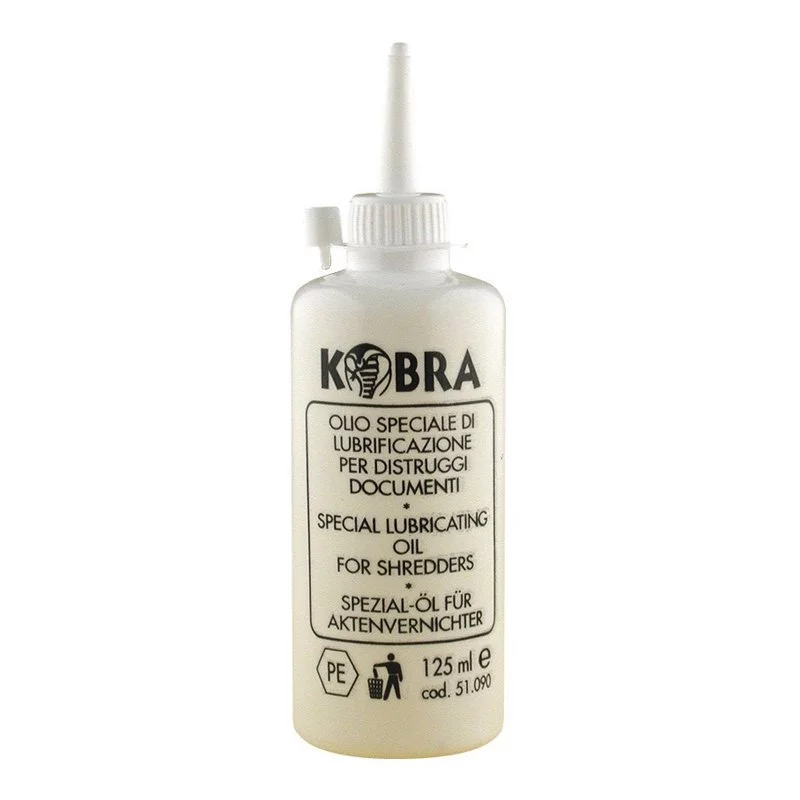 Regularne oliwienie głowic tnących zapewnia lepszą pracę niszczarek. Zachęcamy do częstego wykonywania prostej czynności: na kartkę papieru wypuszcza się kilka kropli oleju, następnie kartkę niszczy się w niszczarce.Specjalna formuła oleju przystosowana do smarowania noży tnących.
