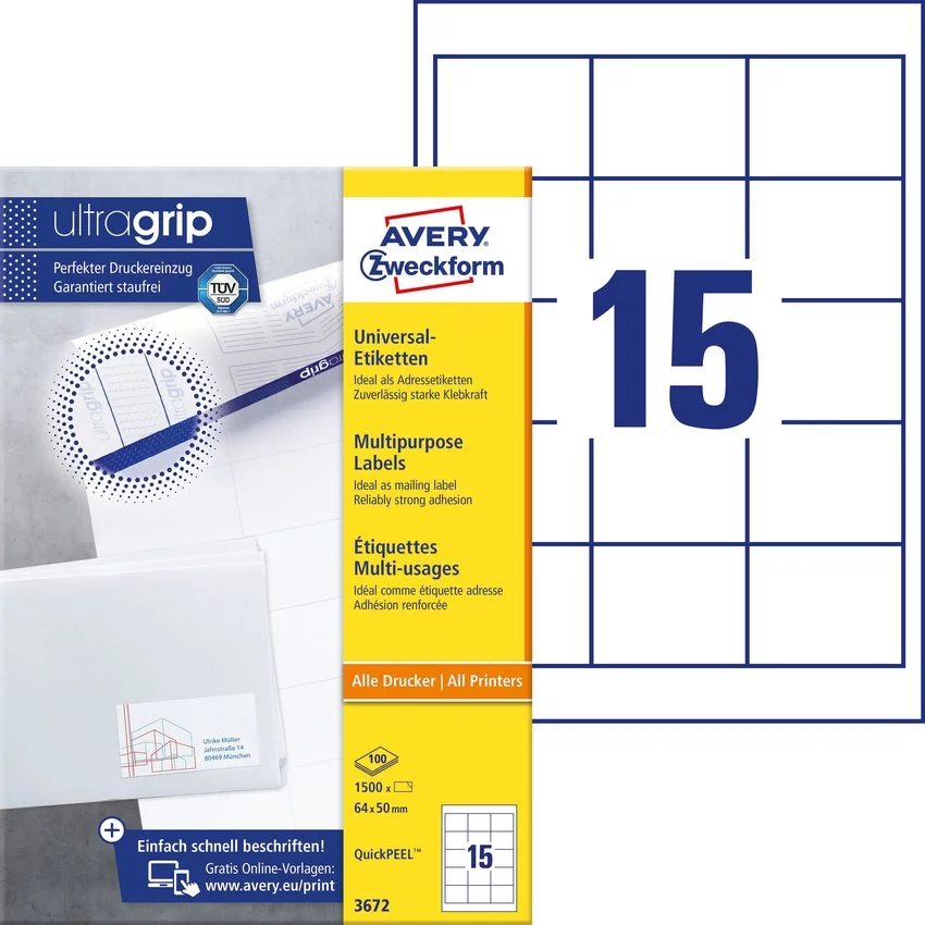 - Etykiety samoprzylepne, uniwersalne Avery Zweckform 3672 to idealne rozwiązanie dla Twojego biura. Trwałe do wszechstronnego zastosowania. Idealne do zadruku w drukarkach laserowych i kopiarkach.