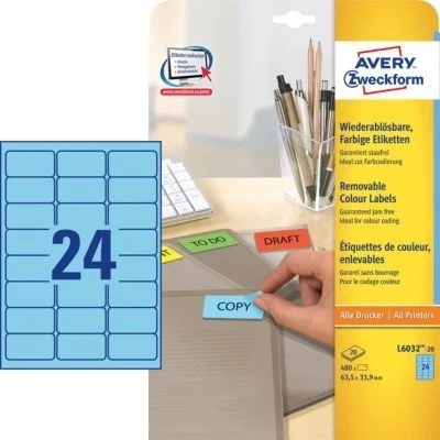 Minietykiety samoprzylepne Avery 63.5x33.9 20/A4 A'24 Niebieskie No.L6032-20