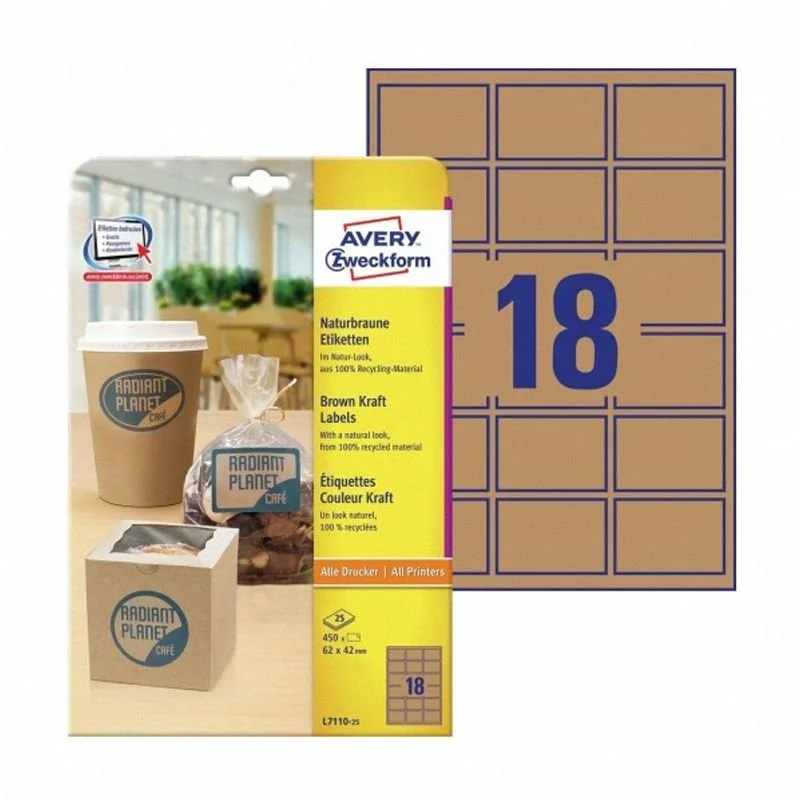 Naturalne Etykiety Samoprzylepne Avery 62x42 18/A4 A'25 Brązowe No.L7110-25