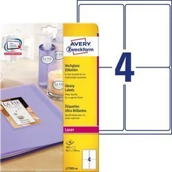 Etykiety Błyszczące Avery 99.1x139 4/A4 A'40 Białe No.L7769-40