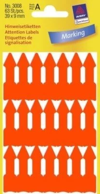 - Odblaskowe strzałki informacyjne Avery Zweckform 3008 w kolorze czerwonym. Niezastąpione do oznaczania ważnych tekstów. Alternatywa dla zakreślaczy.