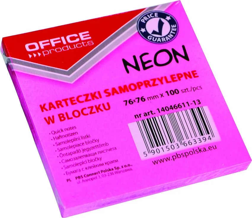 Bloczek Samoprzylepny 76x76 Różowy Neon /Office Products