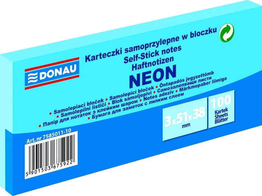 Bloczek Samoprzylepny 51x38 3szt. Niebieski Neon /Office Products