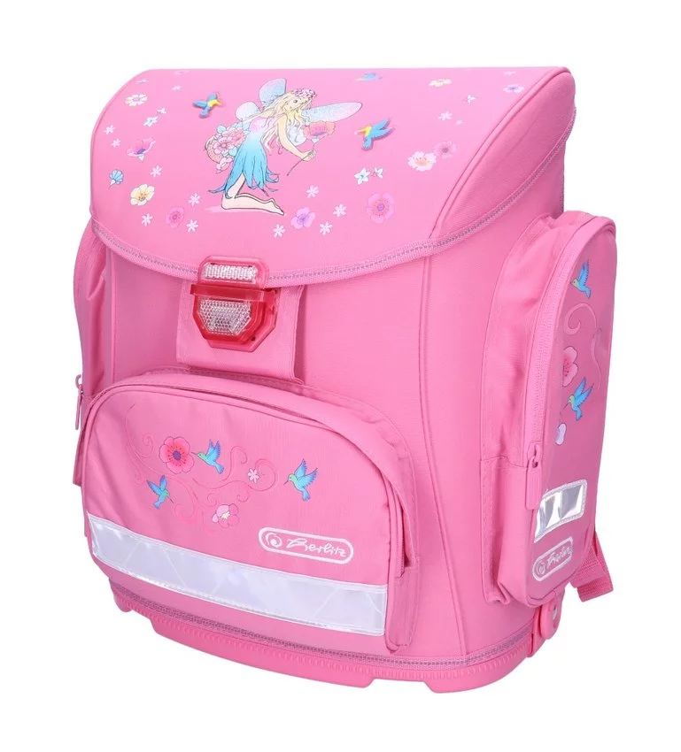 - Funkcjonalność: 1 duża przegroda z osobną przegrodą na książki, plastikowa kieszonka z planem lekcji na wewnętrznej stronie górnej klapy, sakiewka na drobiazgi, 1 kieszeń przednia zapinana na zamek błyskawiczny, 2 boczne kieszenie.